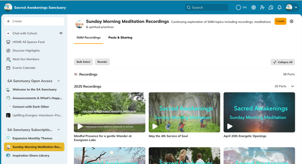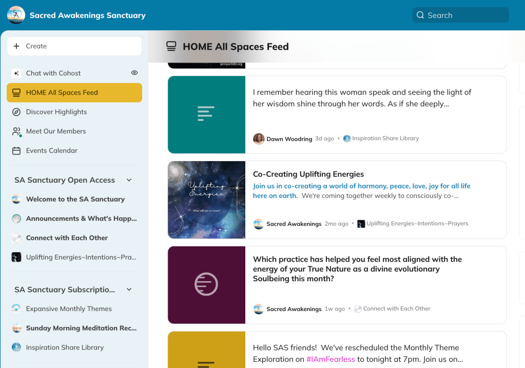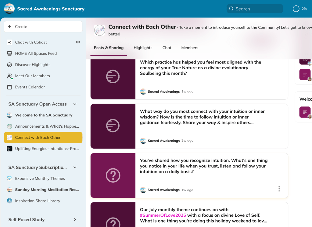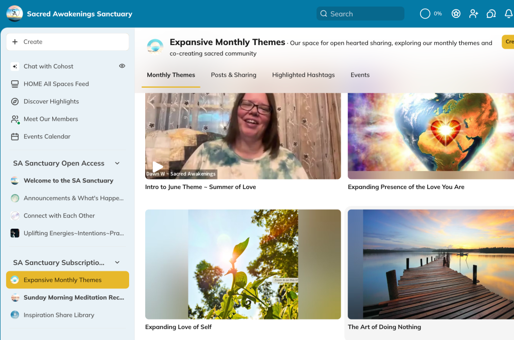 The SAS offers open-hearted community connection, self-paced and live courses, monthly themes for expanding consciousness and we’re continually adding more. We’re focused on engagement that makes a difference in your life. Like everything in life, we get what we put in so we encourage everyone to participate as hearts call and practice what is shared here. This soul driven life is about thoughts, words & actions in our moment to moment choices.